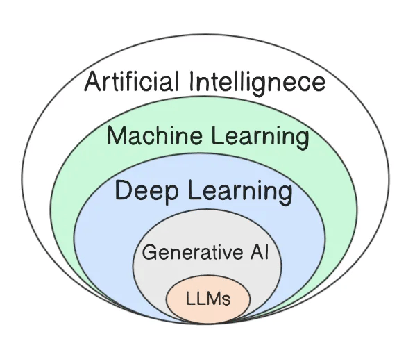 Generative AI (GenAI) is a broader category (within AI) that refers to any AI capable of generating new content. While Large Language Models (LLMs) can be used to create text-based GenAI applications, GenAI also includes image generation, music/audio creation, and other forms of content generation that don't necessarily use LLM technology.